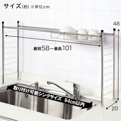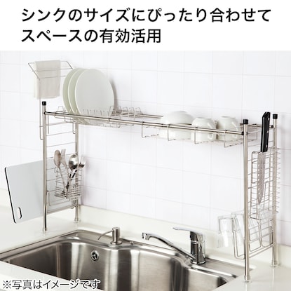 伸縮可能タイプの水切りラックなので各家庭ごとのシンクの大きさに調節することができます。また、別売りのパーツと組み合わせることで自由にカスタマイズ可能!